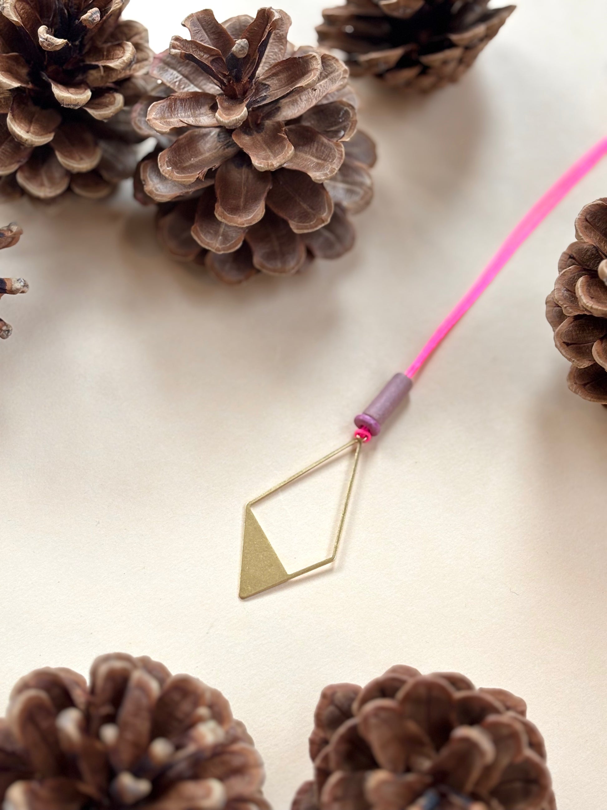Hübsches Anhängerset aus Messing, Keramikperlen und Nylonband