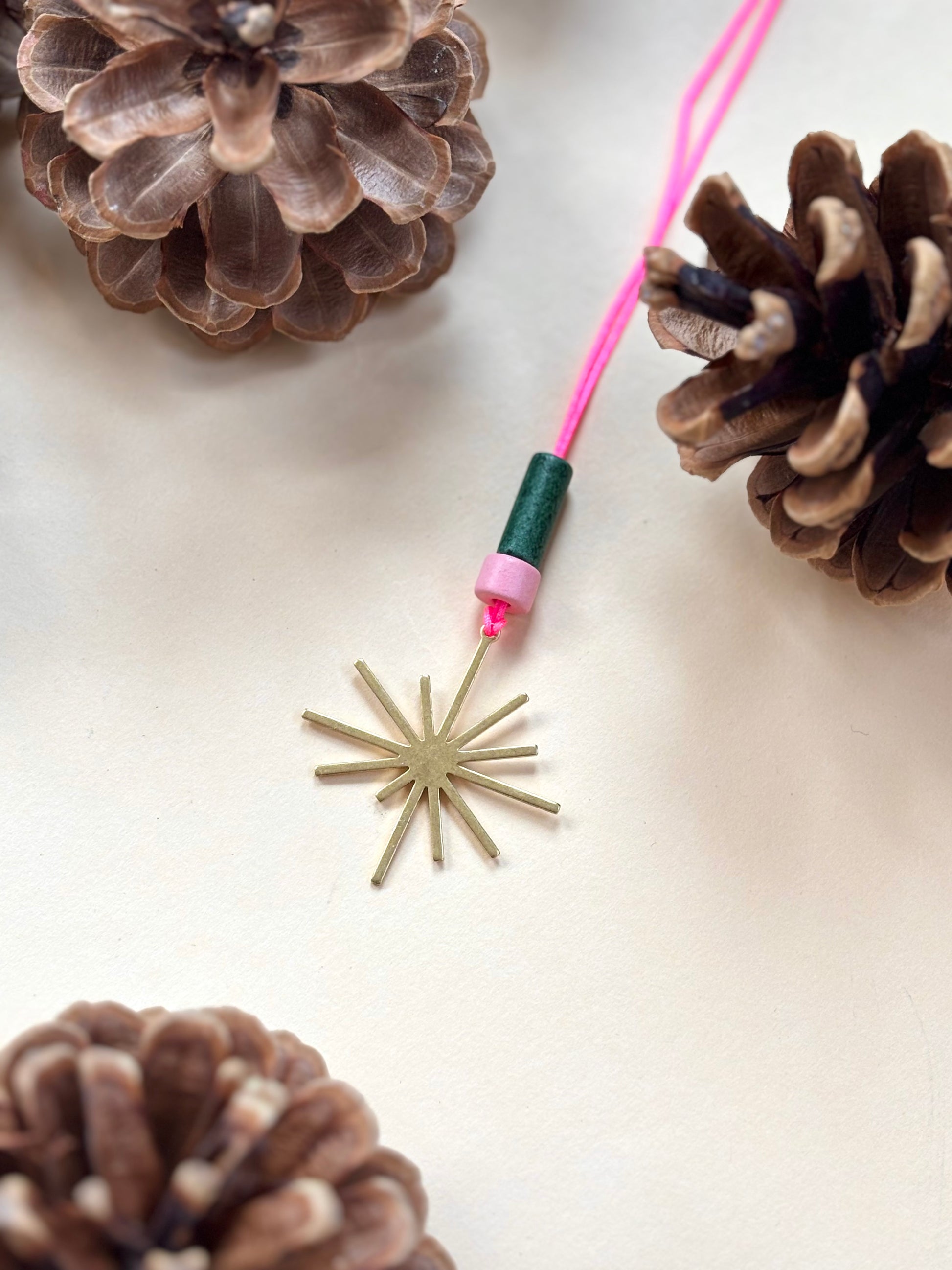 Hübsches Anhängerset aus Messing, Keramikperlen und Nylonband
