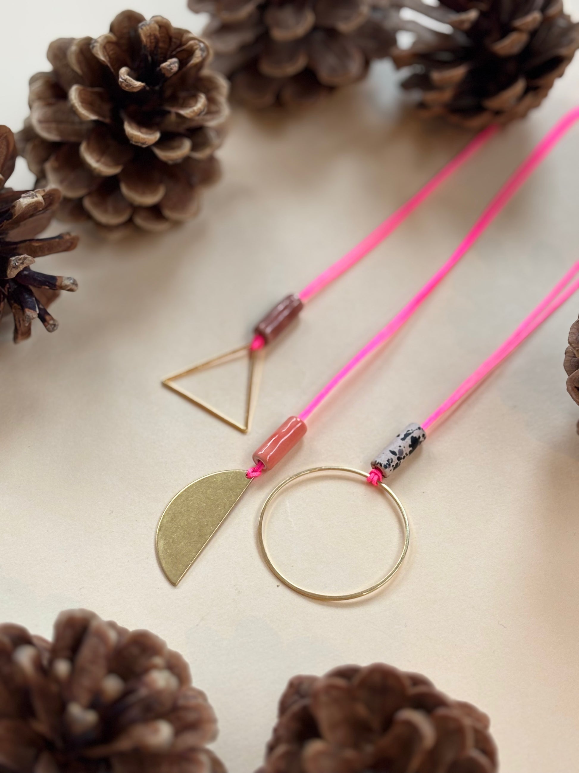 Hübsches Anhängerset aus Messing, Keramikperlen und Nylonband