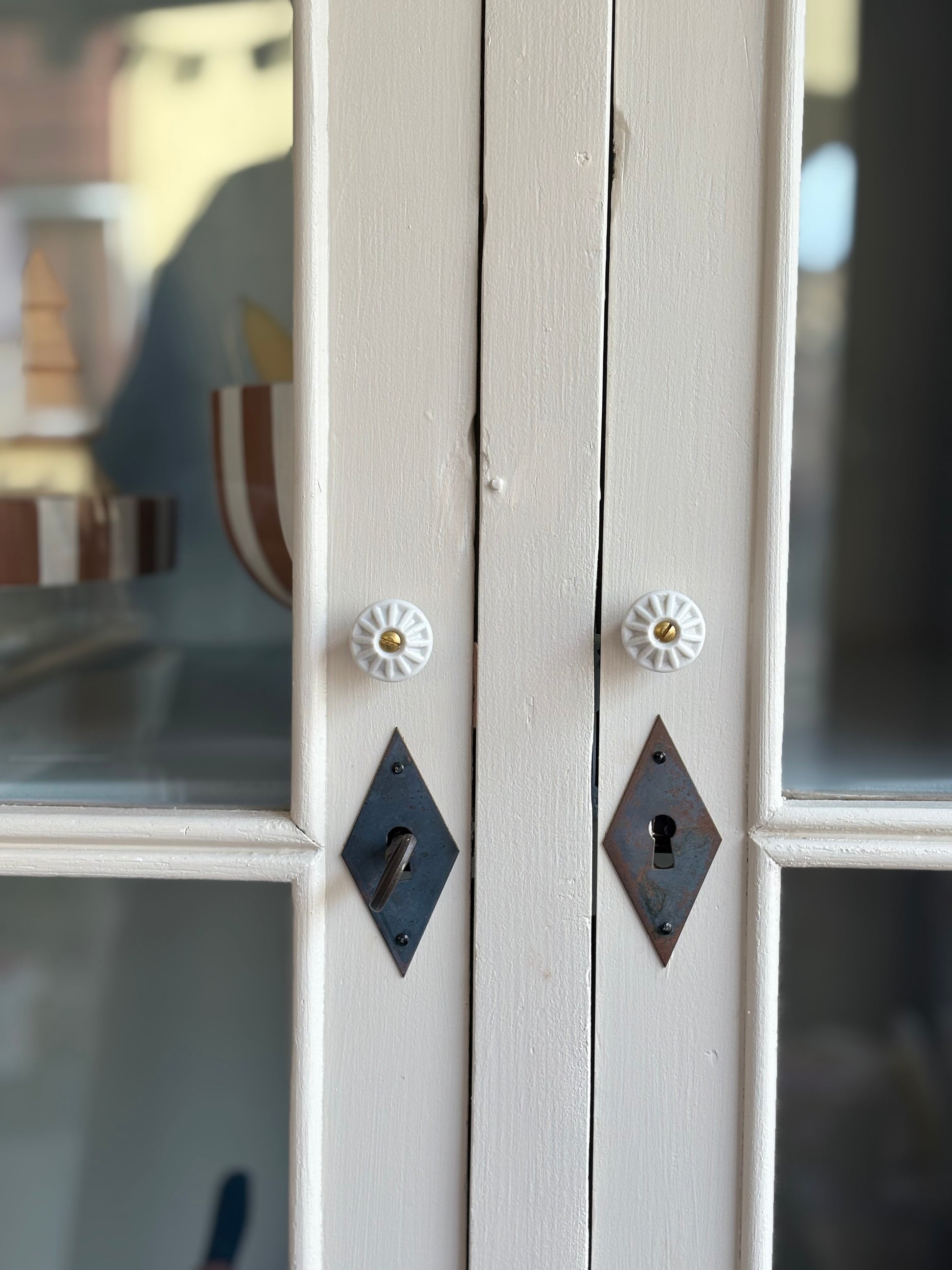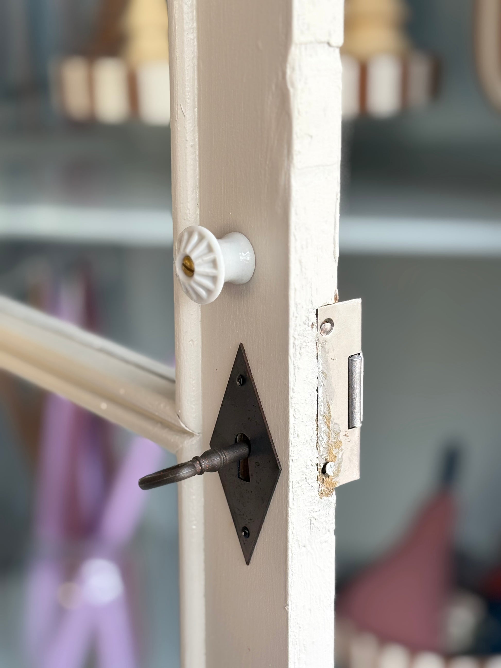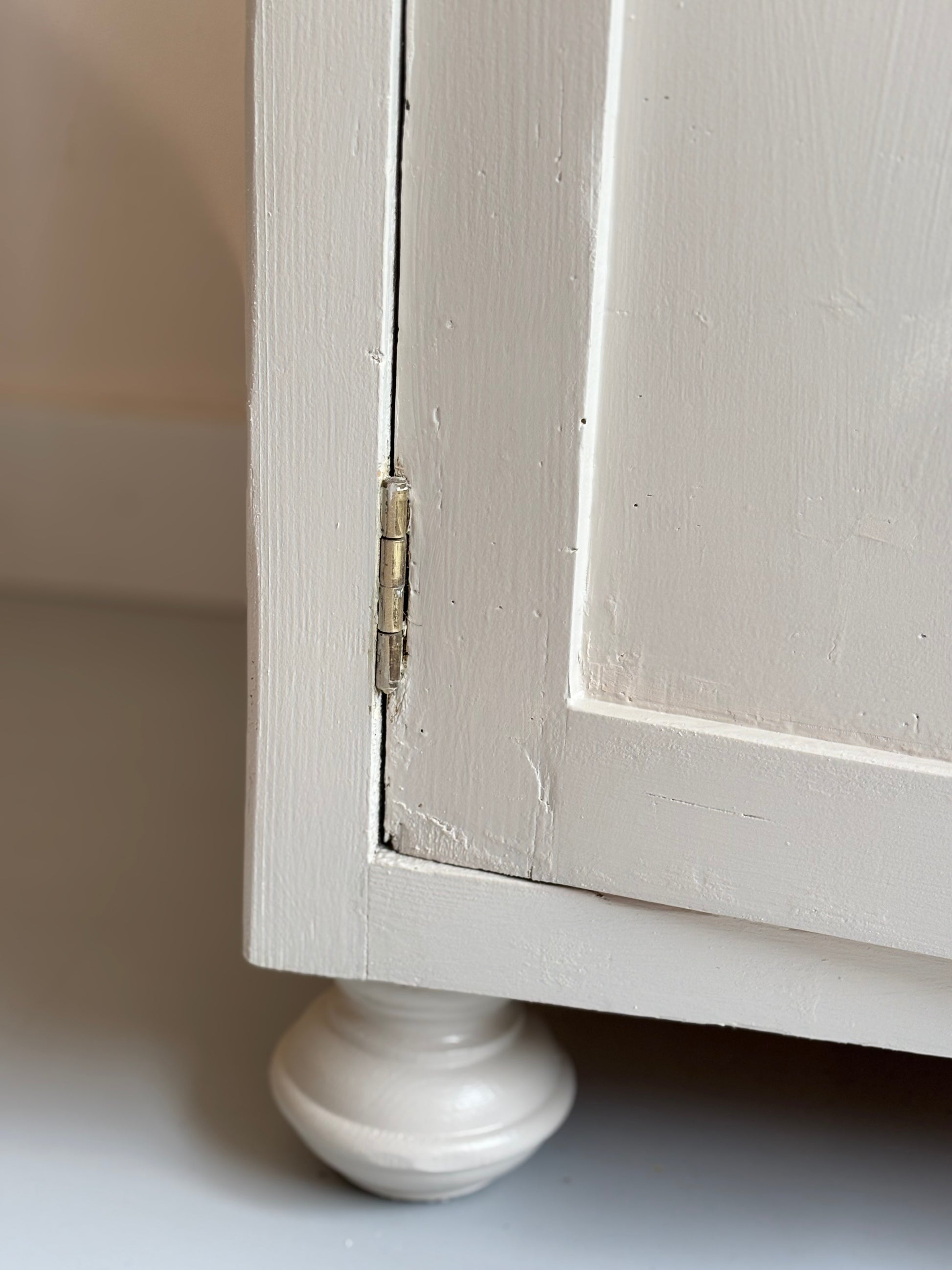 Sie hat eine lange Reise hinter sich, ist sehr alt und wurde mit viel Liebe aufgearbeitet. Neue Füsse, mit Heißluft den alten Lack runter, alles geschliffen, ausgebessert, Innen und Außen grundiert und 2x lackiert, neue Schlösser und Beschläge. Tadaaa! Im letzten Bild seht ihr den Fundzustand. Die Stunden haben sich gelohnt. Findet ihr nicht auch?