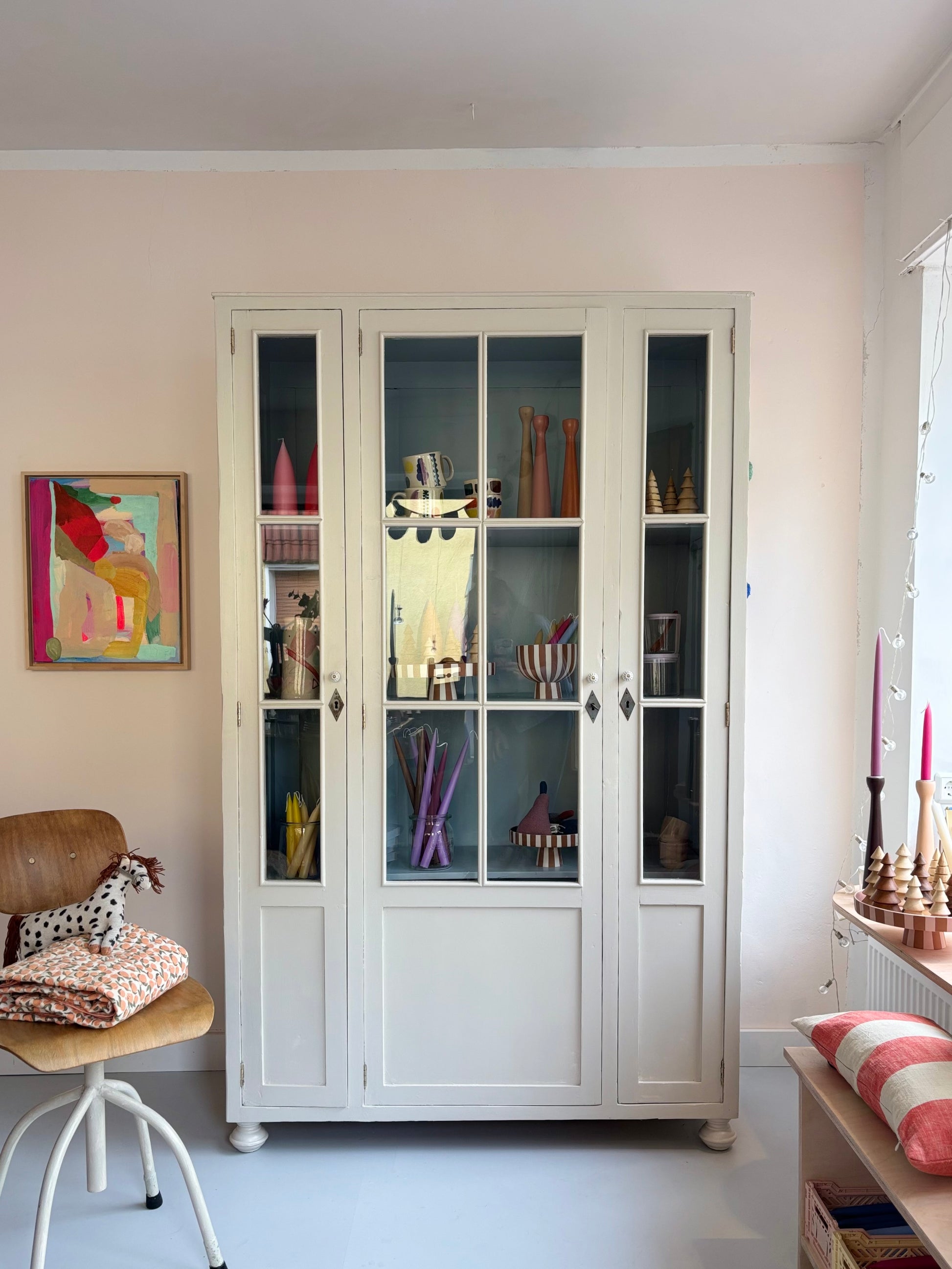 Antike Vitrine ~ vintage weiß/ hellblaugrau
