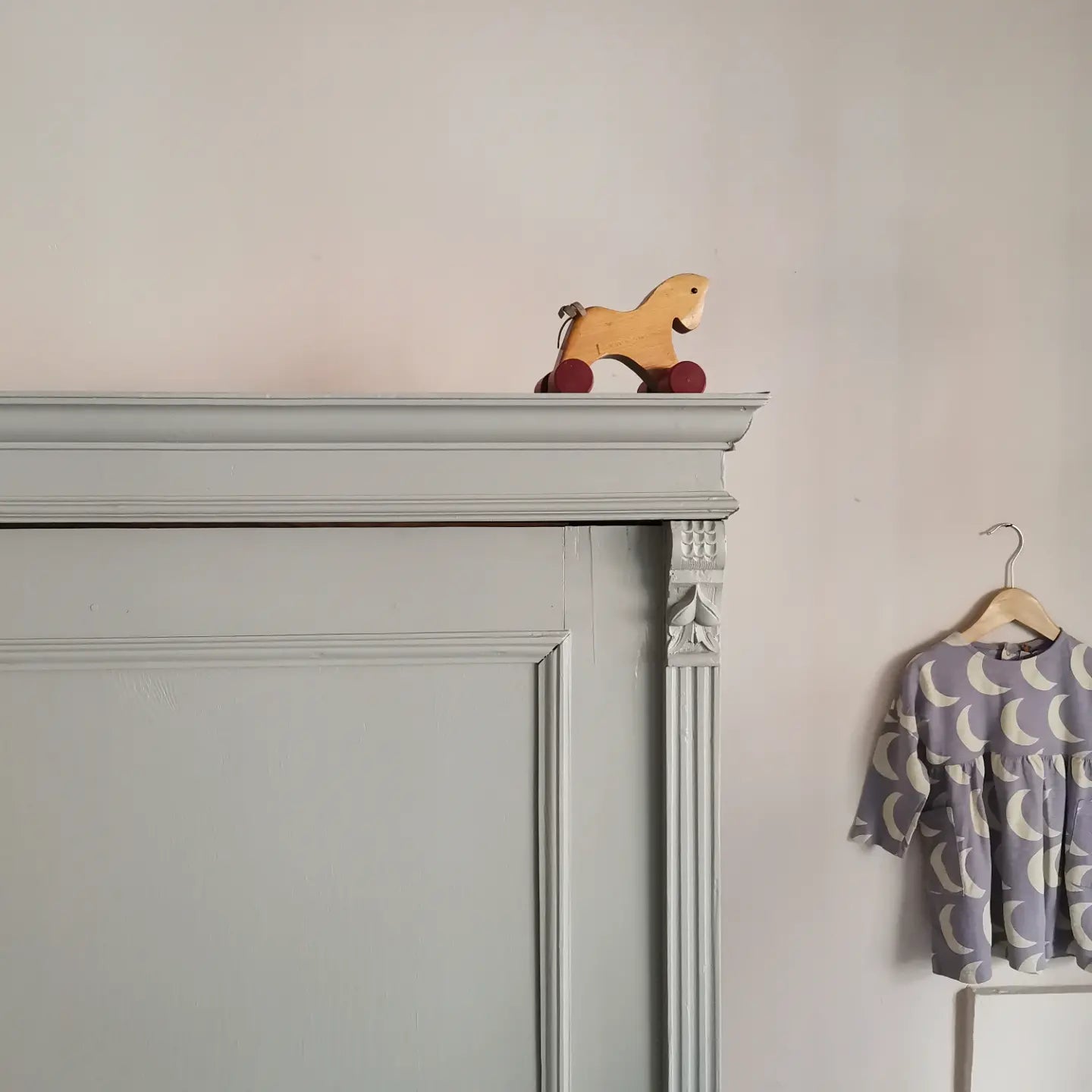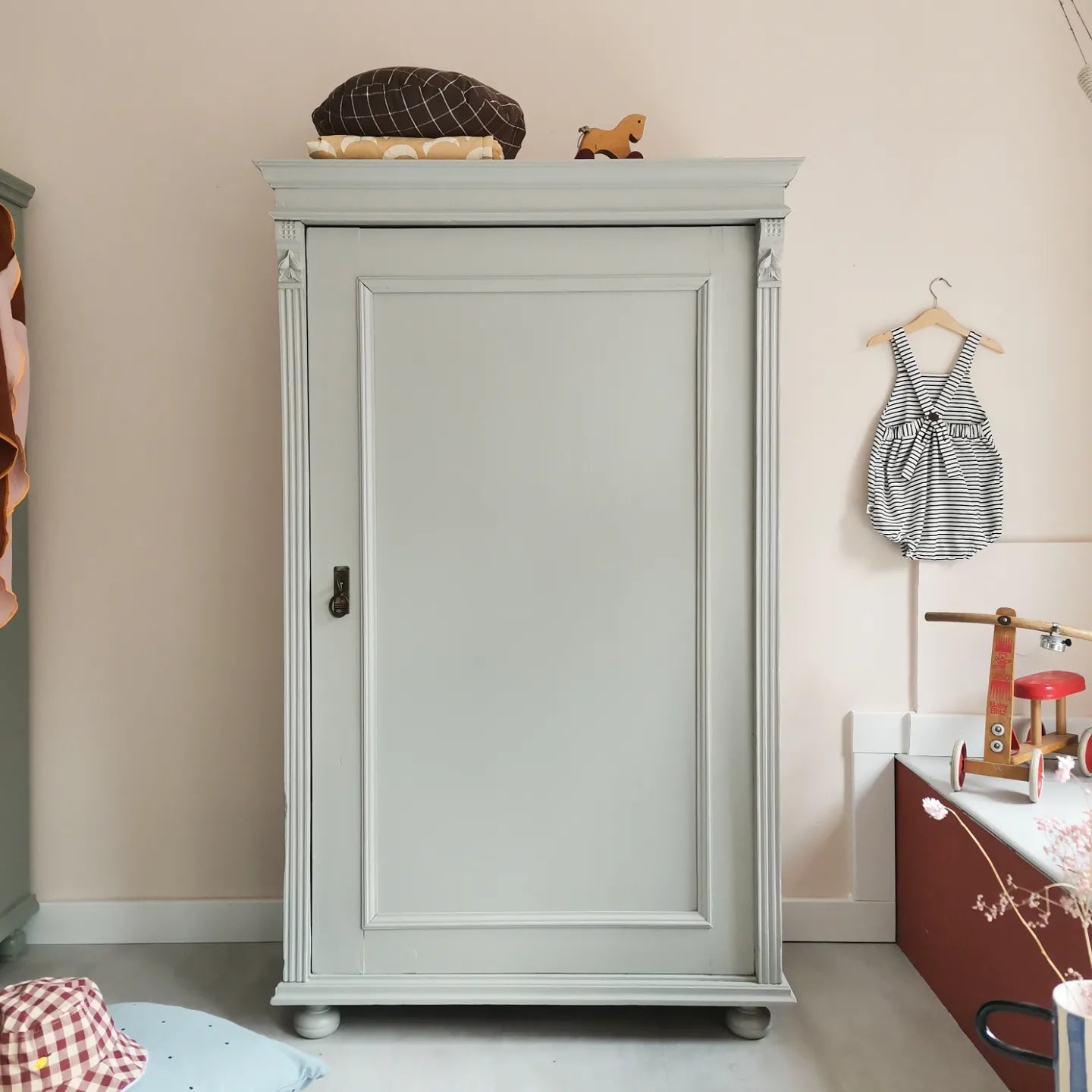Er ist so individuell mit seinem tollen Harkensystem im Inneren. Aussen wurde er in einem sehr schönen Grau von #farrowandball gestrichen, Innen geölt und mit 2 zusätzlichen Regalböden ausgestattet. Er ist klein und kompakt und doch ein kleines Raumwunder.