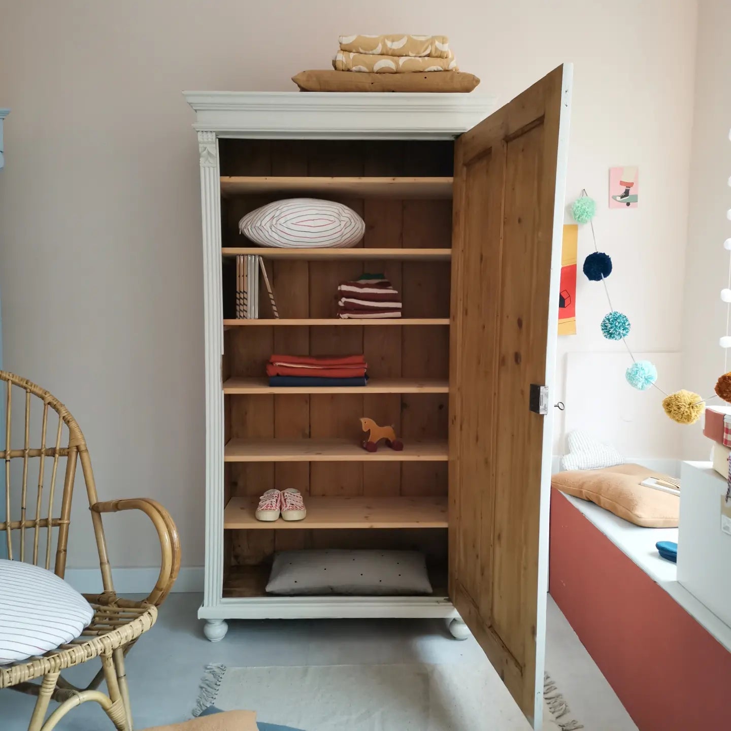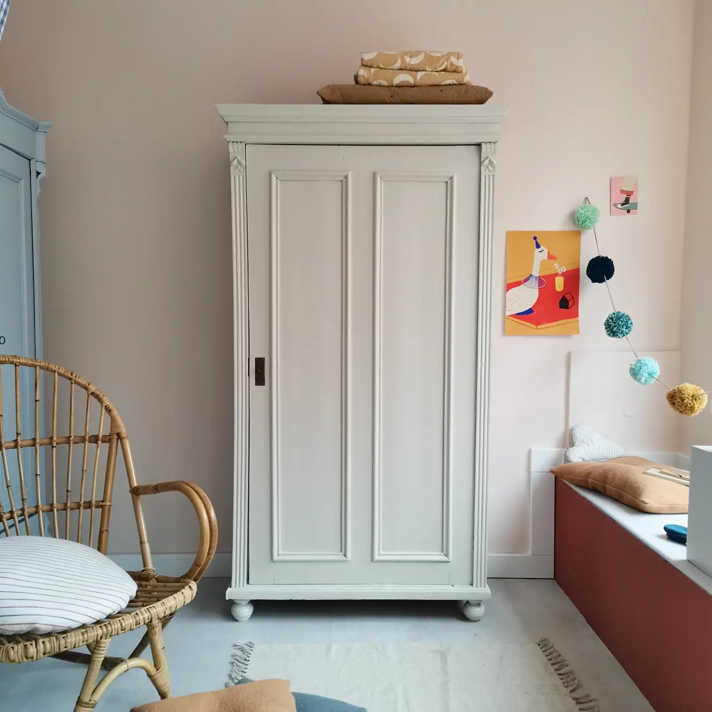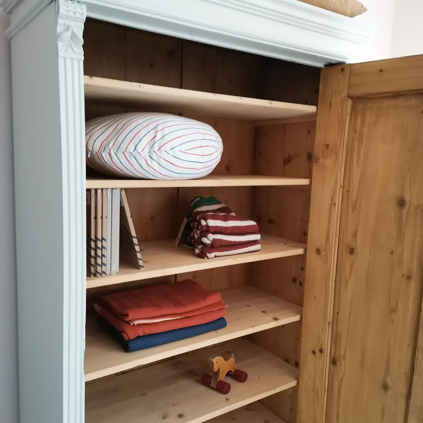 Happy Saturday mit diesem Neuzugang. Mal wieder ein Allrounder, der in jedem Raum denkbar ist. Er hat zierliche Maß, ist Innen mit Regalböden ausgestattet und in einem schlichten gedeckten Weißton von Fsrrow&Ball gehalten.