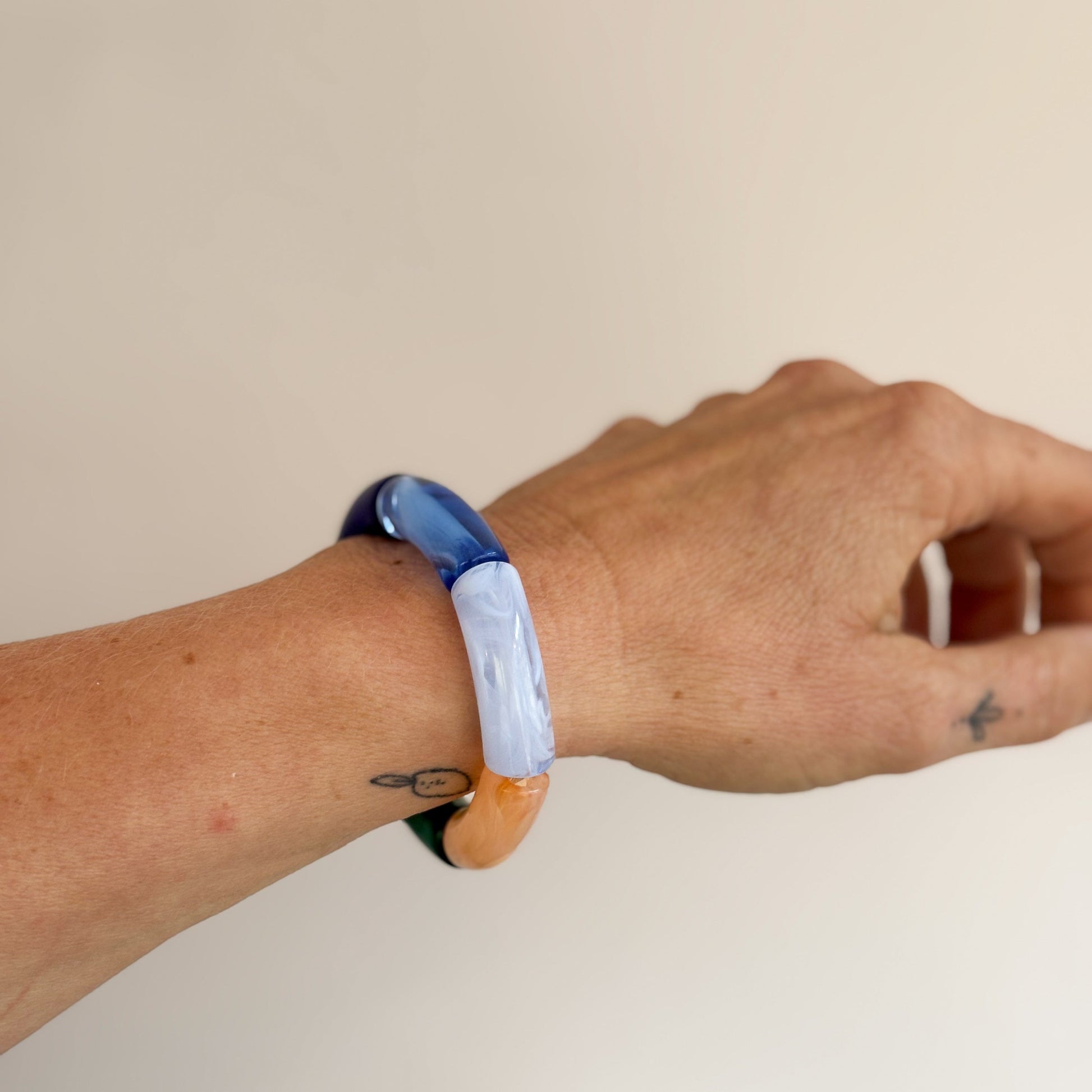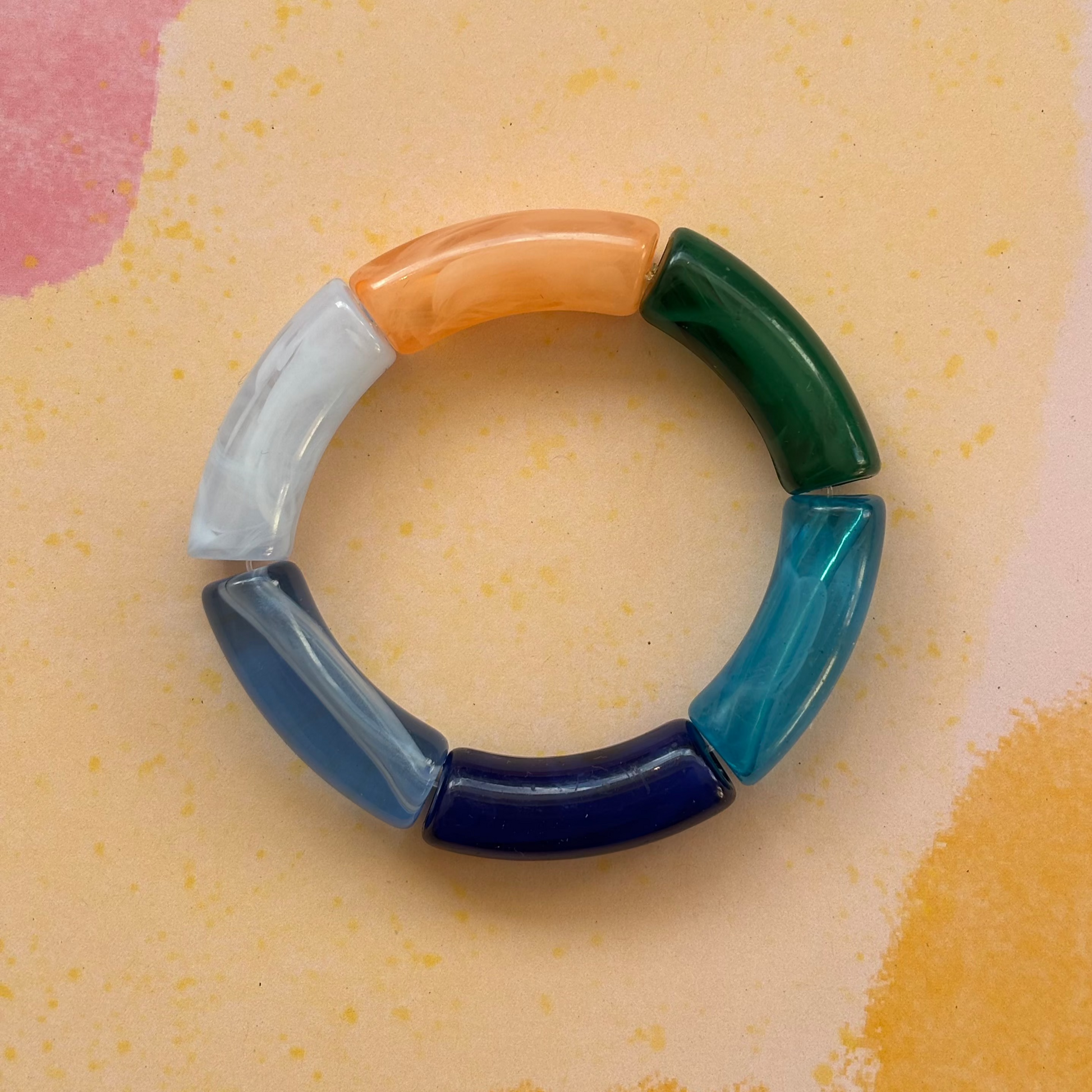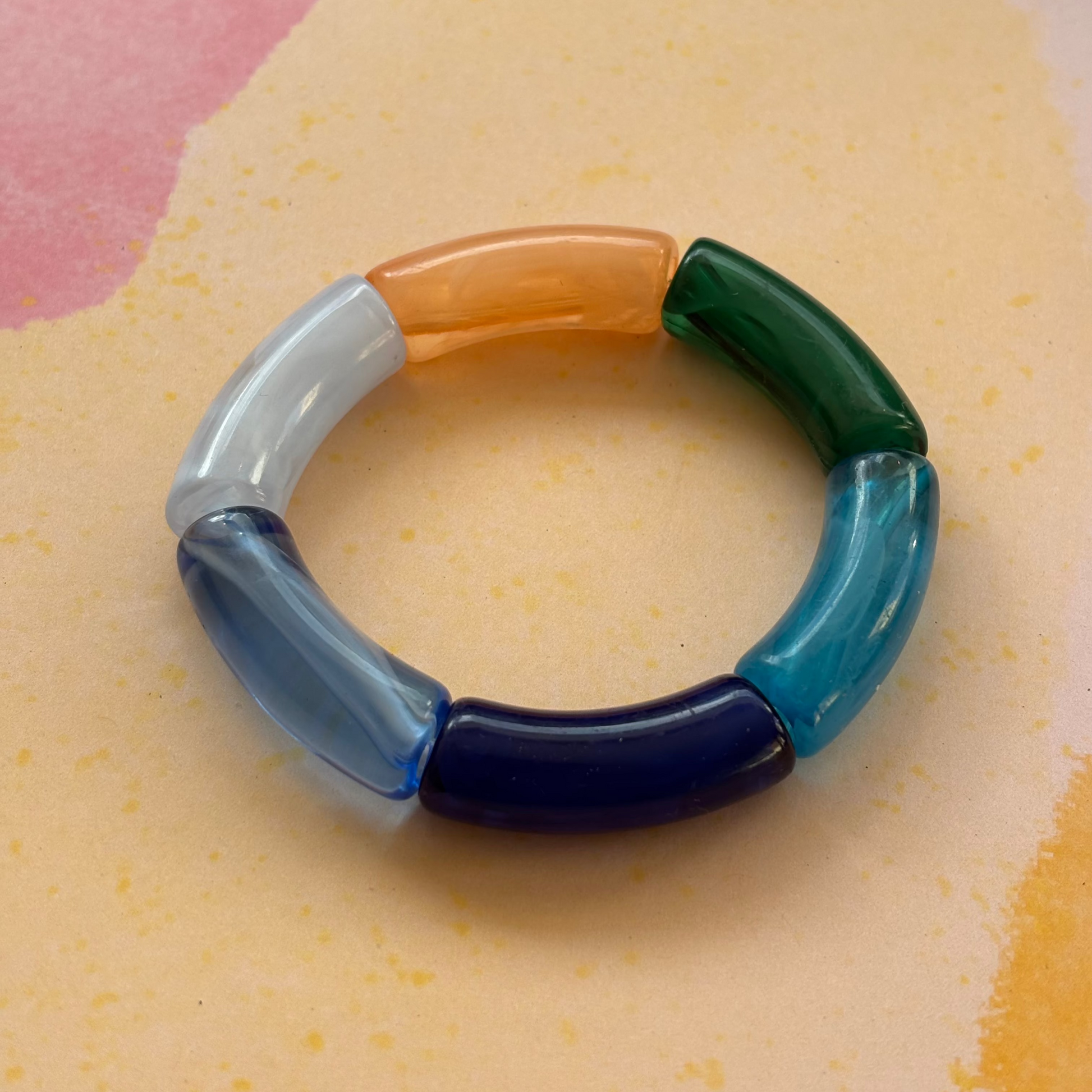 Ein schöner Statement-Armreif aus Acrylperlen auf elastischem Band.