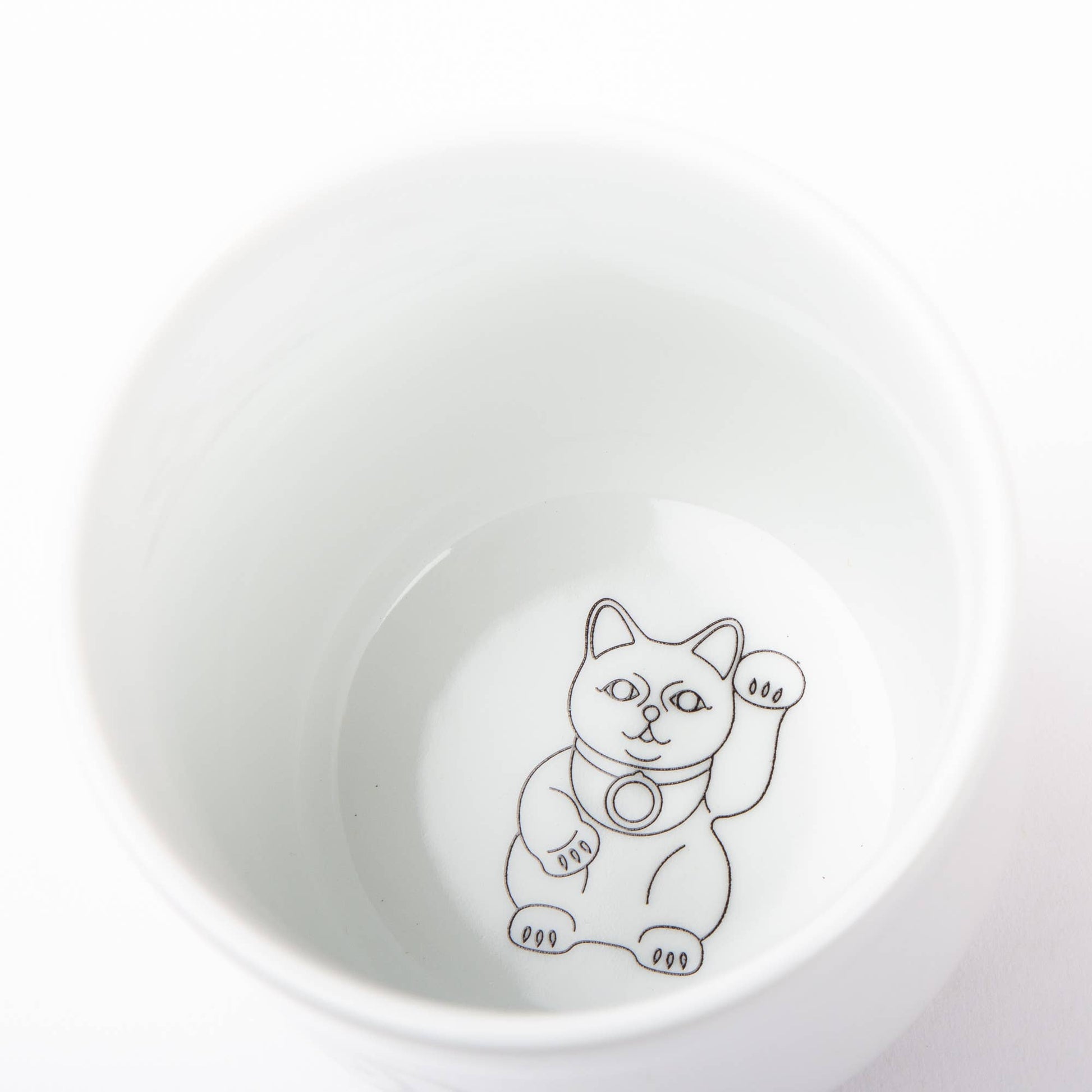 Im Innenboden des Bechers grüßt unser guter Hausgeist, die Frau Hansen Winkekatze. Auf dem Unterboden befindet sich unser Logo. Gefertigt aus feinstem Porzellan in der traditionsreichen Stadt Karlsbad in Tschechien und in Deutschland von Hand bedruckt. Dank Glasur ist der Becher abriebfest und spülmaschinengeeignet. Mit 250 ml Fassungsvermögen ist er perfekt für Kaffee, Tee oder heiße Schokolade.