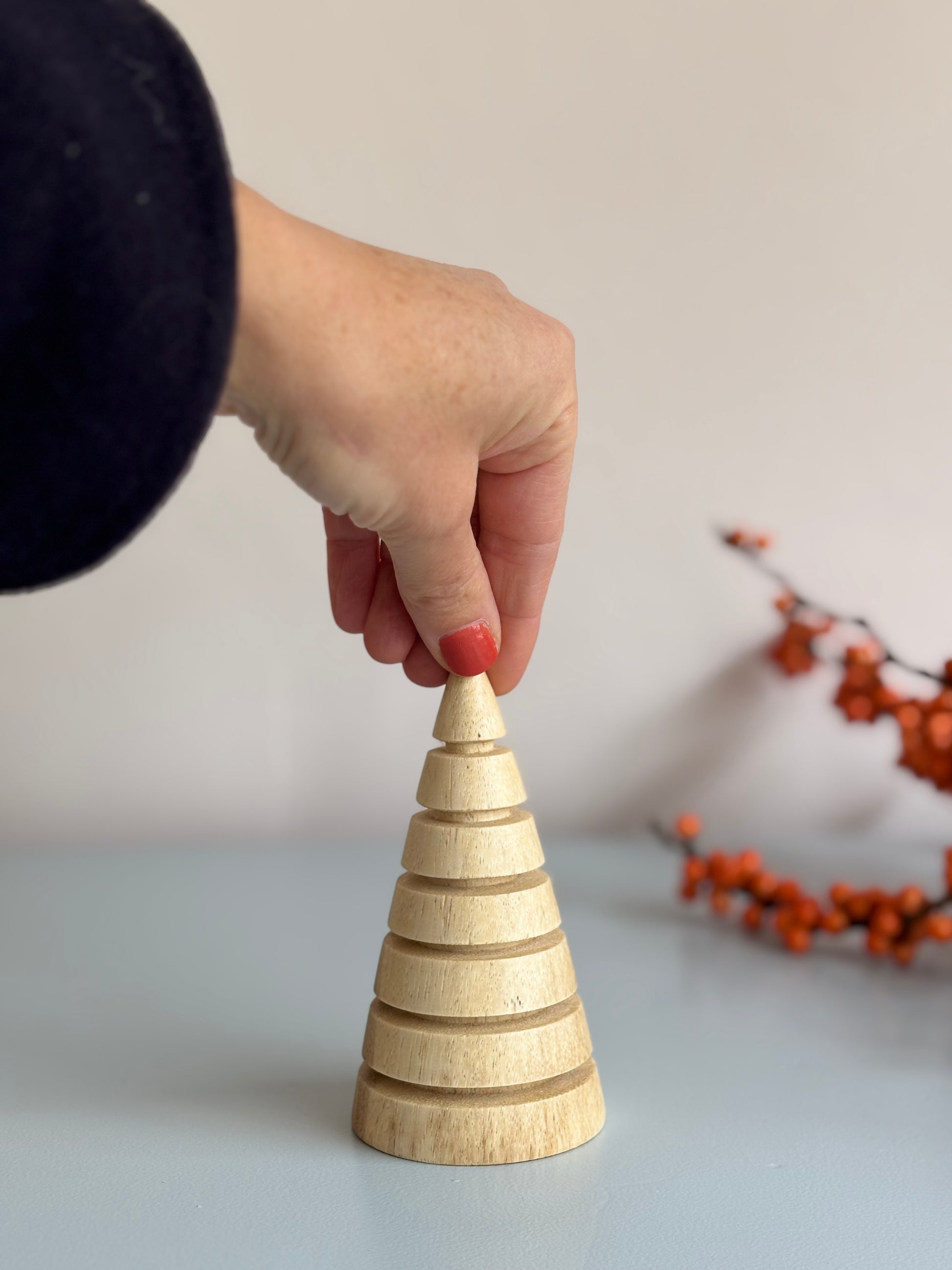 Dekobaum "Tree Aca" aus Akazienholz. Mit den anderen Bäumen in verschiedenen Formen und Größen gestaltet man sich einen ganzen Weihnachtswald.
