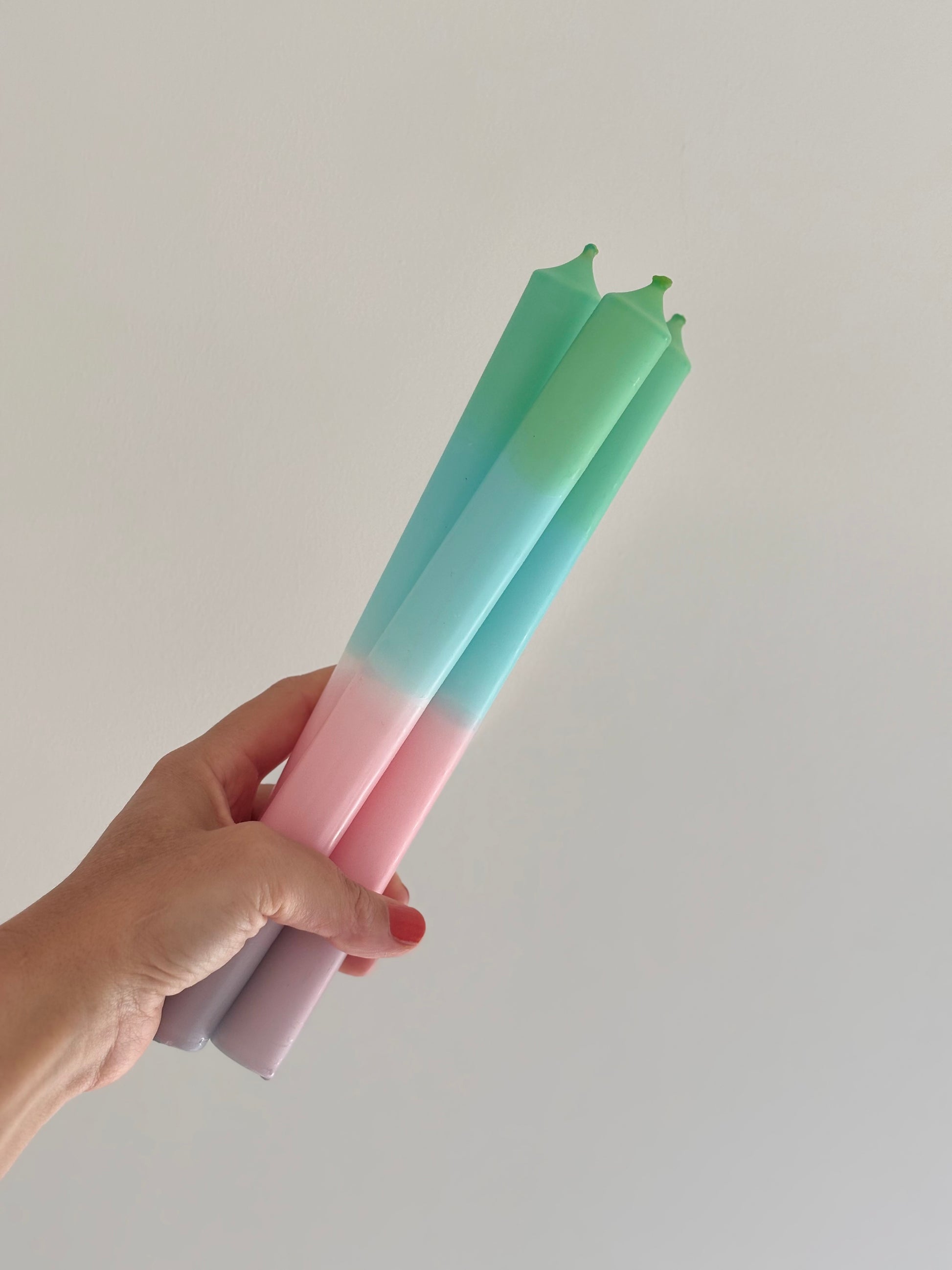 Im Tauchbadverfahren sind diese Kerzen von Hand veredelt. Keine Kerze gleicht so der anderen, sodass jede ein individuelles Einzelstück ist.