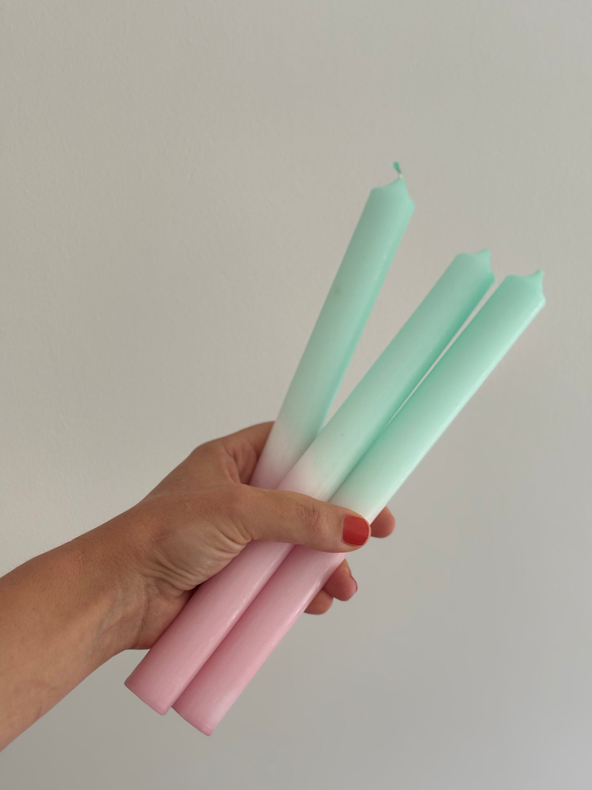 Im Tauchbadverfahren sind diese Kerzen von Hand veredelt. Keine Kerze gleicht so der anderen, sodass jede ein individuelles Einzelstück ist.