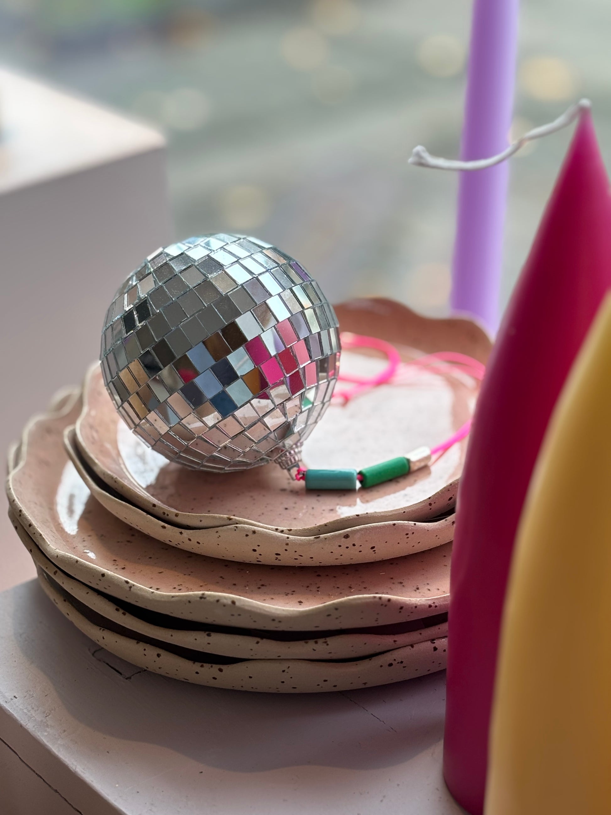 Material: Styropor, Spiegel, Nylonband, Keramikperlen