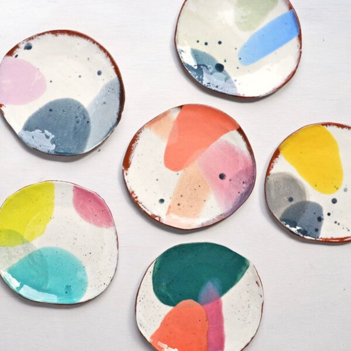 Der Workshop dauert ca. 3-3,5 Stunden, in denen Du ca. 2-3 kleine Teile wie Tellerchen, Vase, Tasse, ein Kerzenständer oder Schüsselchen anfertigen kannst. Zur Verfügung stehen zwei Tonarten (Creme und Creme mit Spots), die Du, wenn du magst, mit bunten Engoben bemalen kannst. Aber auch nur mit transparenter Glasur sind die Werke wunderschön!