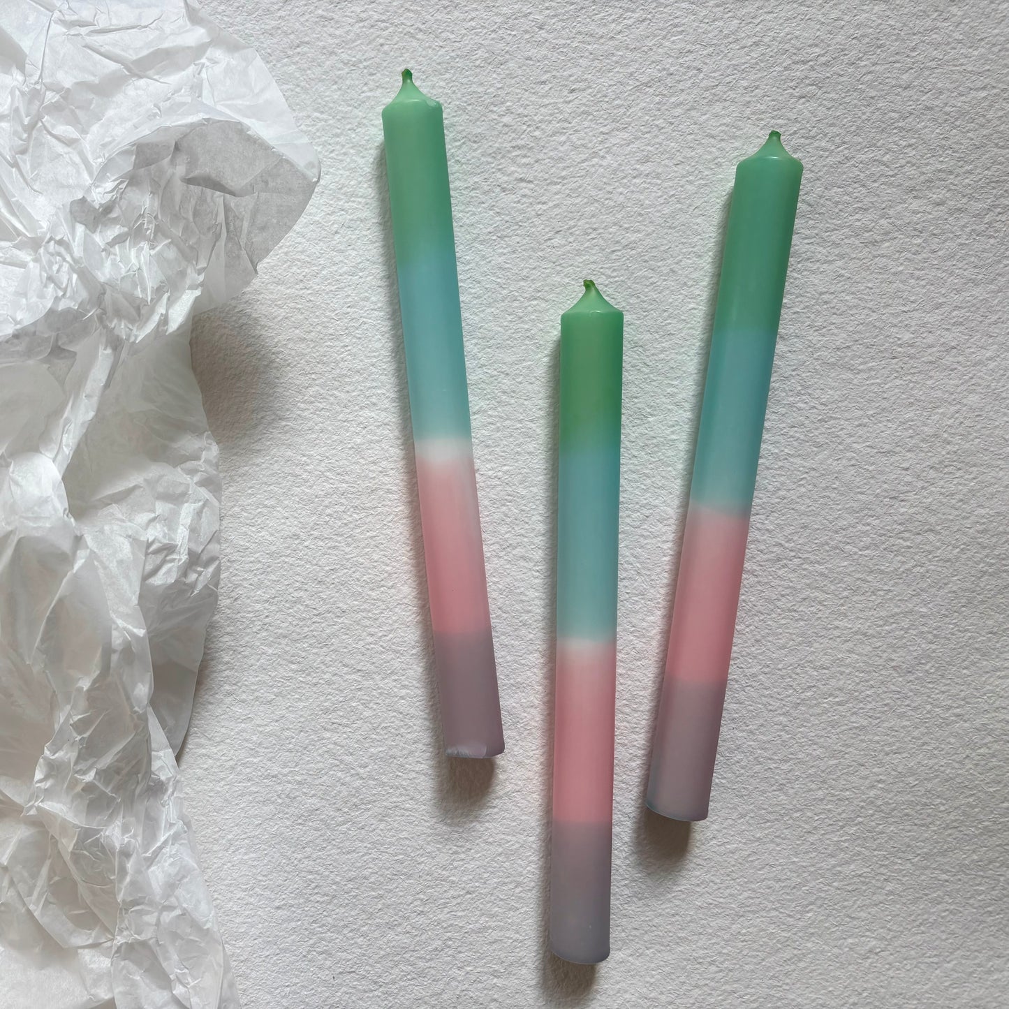 Im Tauchbadverfahren sind diese Kerzen von Hand veredelt. Keine Kerze gleicht so der anderen, sodass jede ein individuelles Einzelstück ist.
