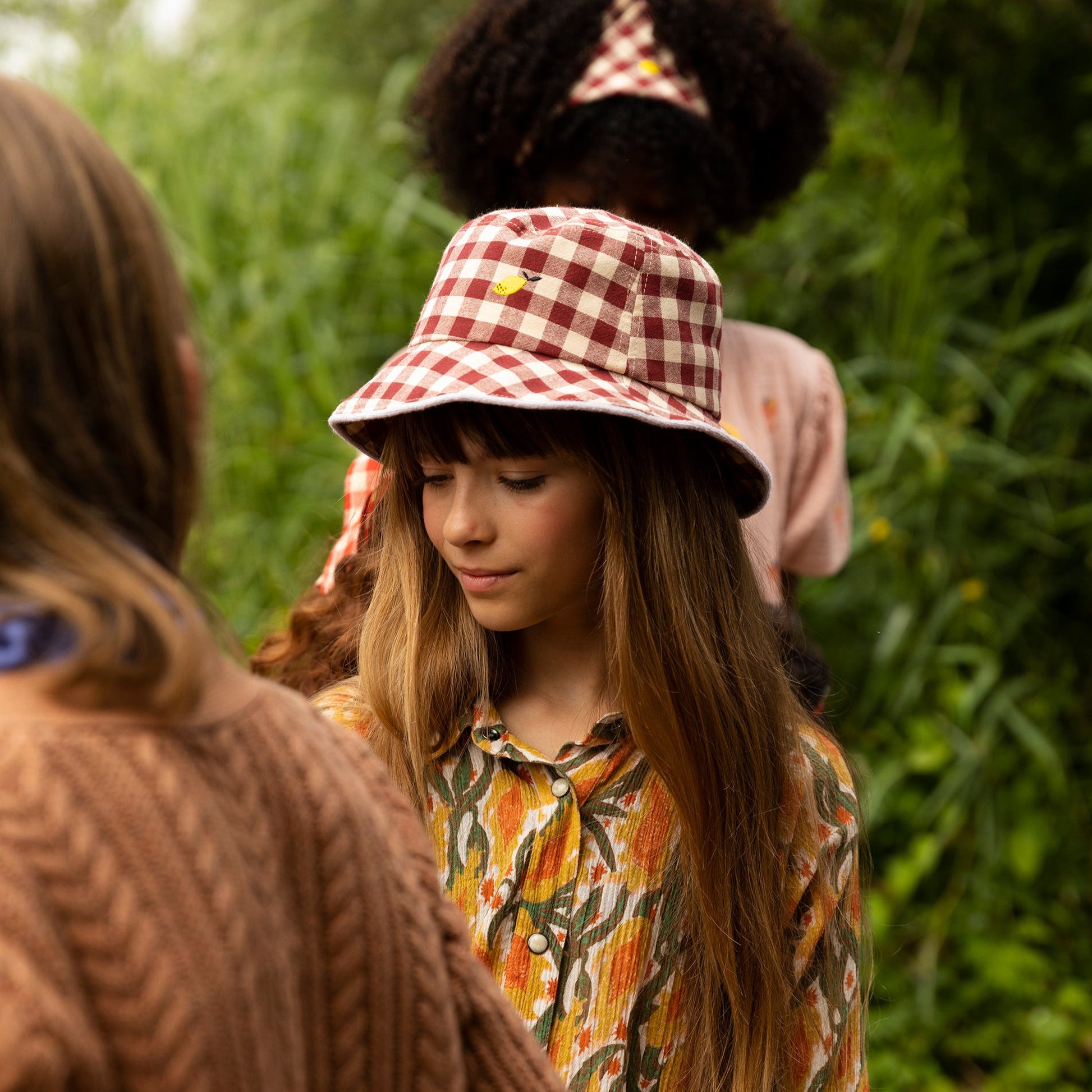 Schöner Sonnehut aus karierter Baumwolle