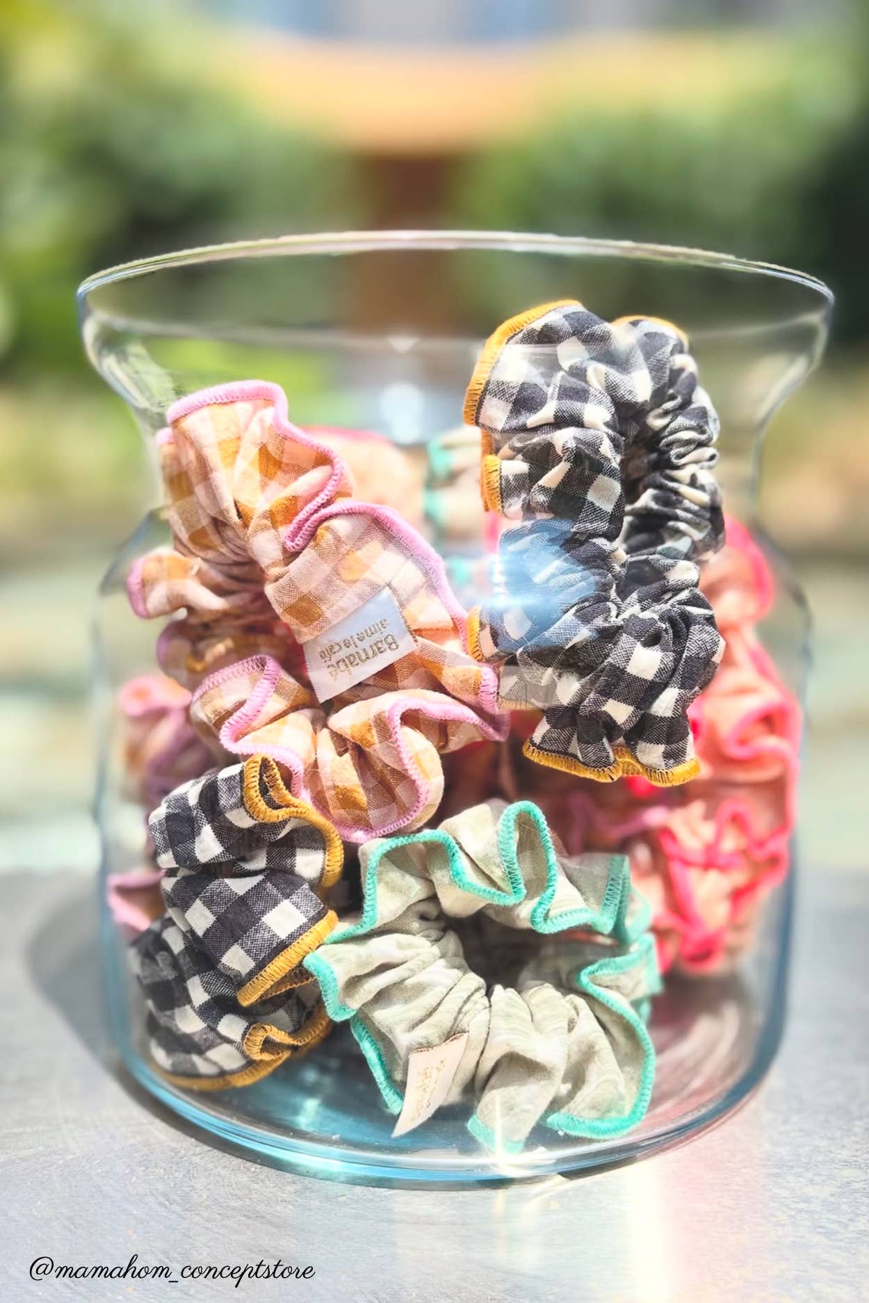 Das kleine Modeaccessoire, das im Sommer wie im Winter getragen werden kann und den Unterschied macht. Vichy-Stoff mit kontrastierender Overlock-Naht. Hergestellt in Portugal. Kann sowohl am Handgelenk als auch für Frisuren (Dutt, Pferdeschwanz ...) getragen werden. Zusammensetzung: Vichy 100% Baumwollpopeline. Pflegehinweise - Waschgang bei 30°C empfohlen.