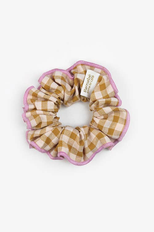 Vichy-Stoff-Haargummi mit kontrastierendem Overlockstich: Lebkuchen